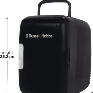 This Russell Hobbs Mini Compact Cooler is designed to fit neatly into smaller spaces. Ideal for your bedroom. home office or kitchen countertop. this appliance has 4L of space to fit up to 6 x 330ml drink cans. or a few favourite snacks within handy reach.
